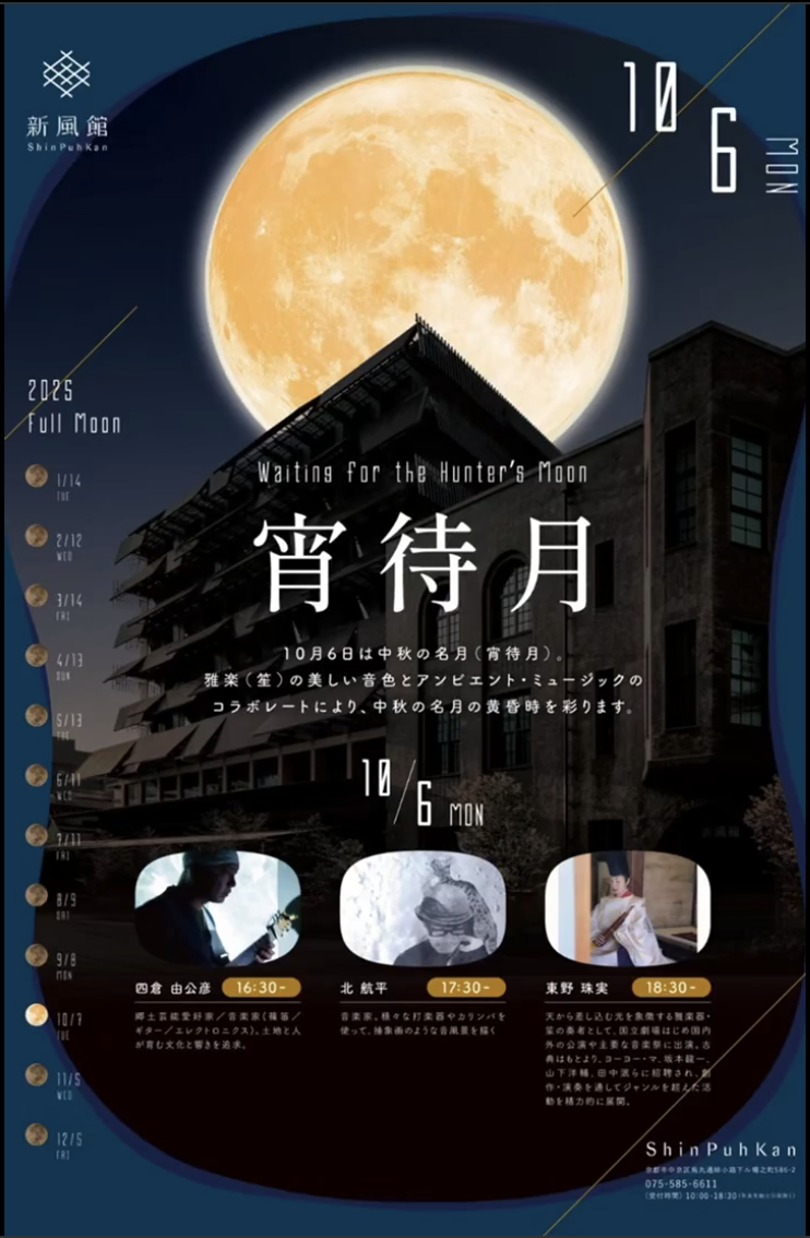 10/6(月)に出演するアンビエントイベント、京都の新風館での中秋の名月のイベント『宵待月 -Waiting for the Harvest Moon-』についてお話しします。